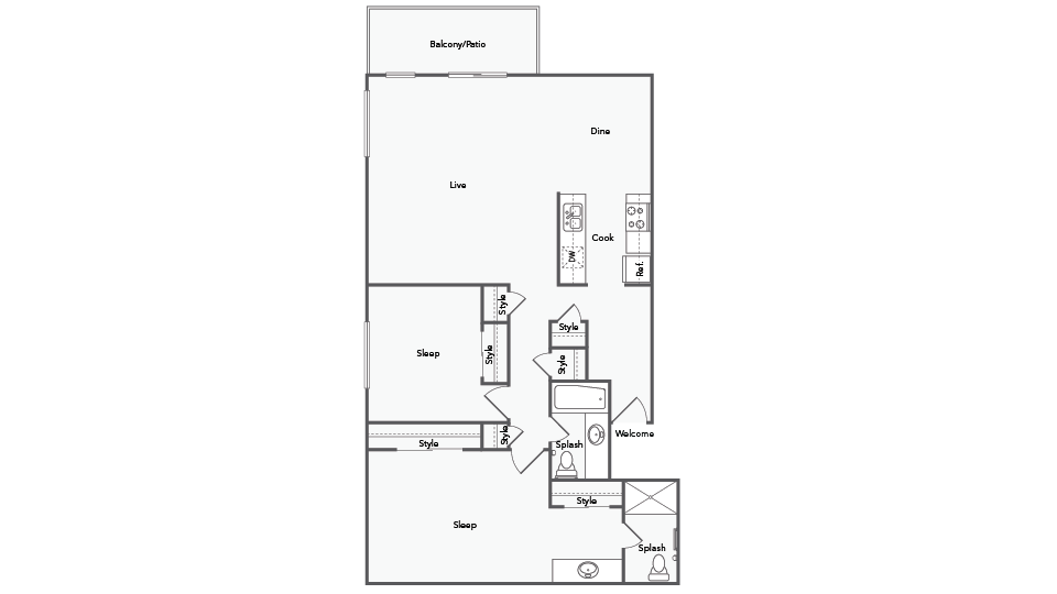 1 Dormitorio, 1 Baño, 735 pies²Disponible AhoraGalería del Modelo