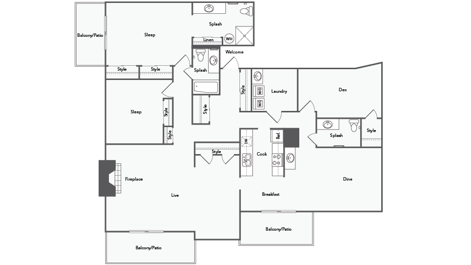 Modelo de apartamento: A8Desde $2,2561 Dormitorio, 1 Baño, 940 sq ftDisponible Ahora![]()