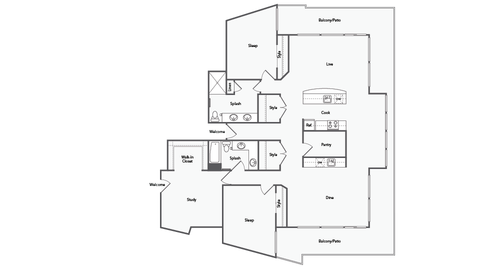 Modelo de apartamento: A3$1,9291 Dormitorio, 1 Baño, 735 sq ftDisponible Ahora![]()