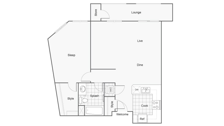 1 Dormitorio, 1 Baño, 678 pies²Disponible AhoraGalería del Modelo