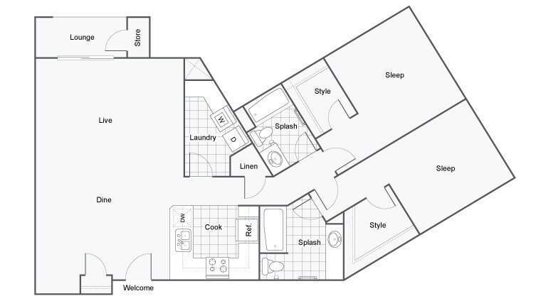 Modelo de apartamento: SegoviaDesde $2,7401 Dormitorio, 1 Baño, 678 sq ftDisponible Ahora![]()