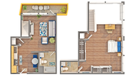 Estudio, 2 Baños, 807 pies²Disponible AhoraGalería del Modelo