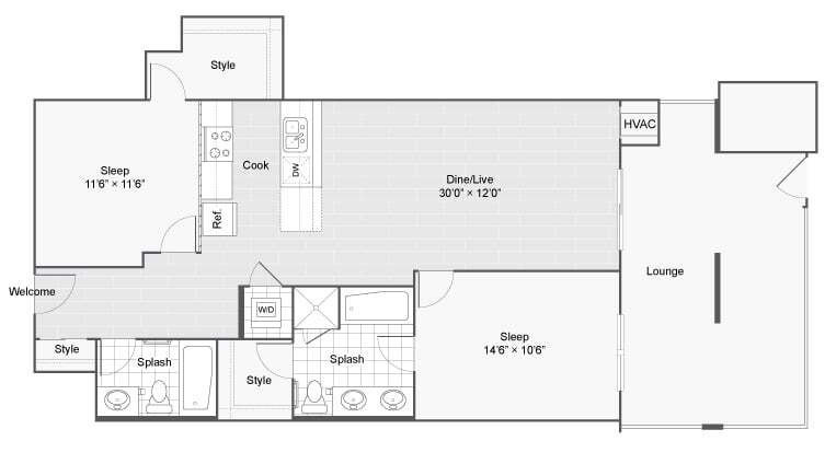 Modelo de apartamento: MaxwellDesde $2,6991 Dormitorio, 1 Baño, 925 sq ftDisponible Ahora![]()