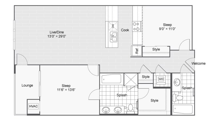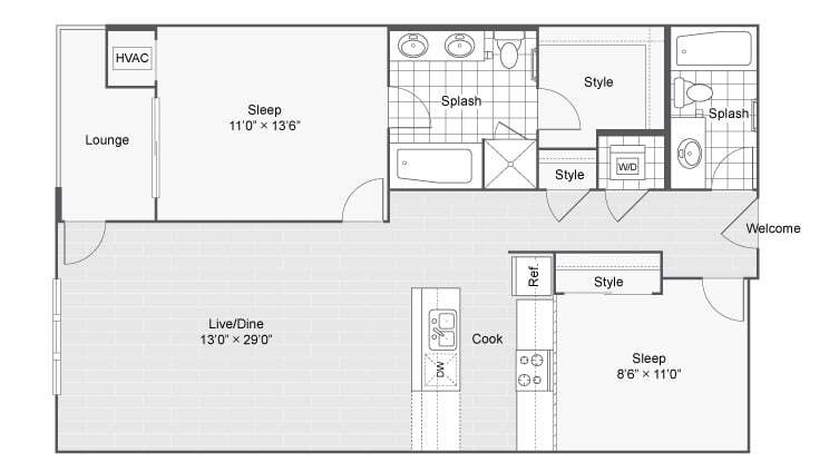 Modelo de apartamento: Taylor LoftDesde $2,9492 Dormitorios, 2 Baños, 897 sq ftDisponible Ahora![]()