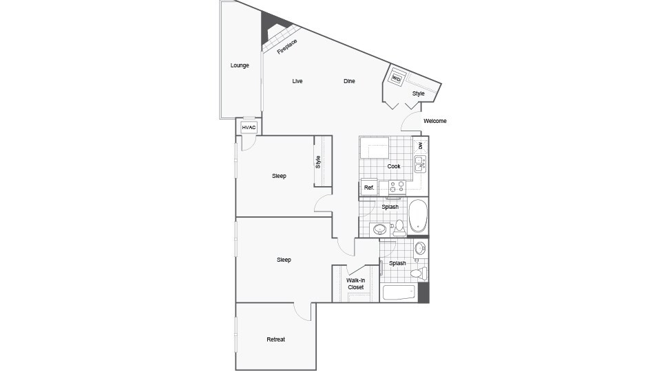 Modelo de apartamento: Oak HillDesde $1,5451 Dormitorio, 1 Baño, 770 sq ftDisponible Ahora![]()