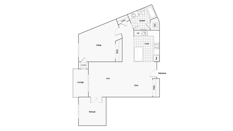 Modelo de apartamento: AquilaDesde $1,6601 Dormitorio, 1 Baño, 780 sq ftDisponible Ahora![]()