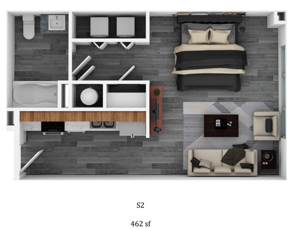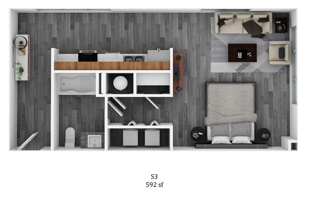Estudio, 1 Baño, 592 pies²Disponible AhoraGalería del Modelo