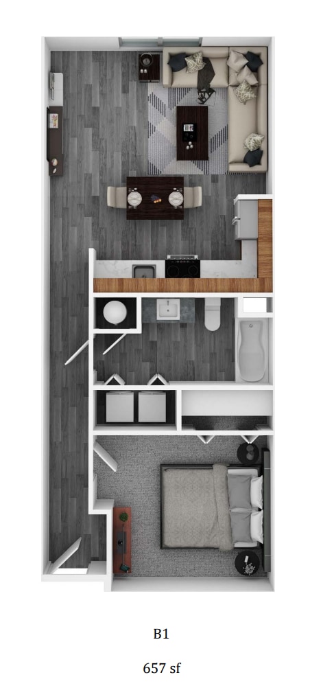 1 Dormitorio, 1 Baño, 657 pies²Disponible AhoraEl más baratoEsta opción tiene los precios más bajos para este modeloGalería del Modelo