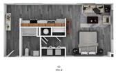 Estudio, 1 Baño, 888 pies²El más grandeEsta opción tiene las unidades más grandes para este modeloGalería del Modelo