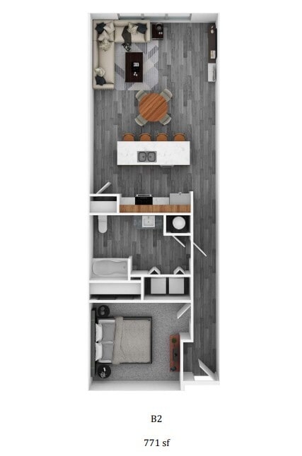 1 Dormitorio, 1 Baño, 771 pies²Disponible AhoraGalería del Modelo