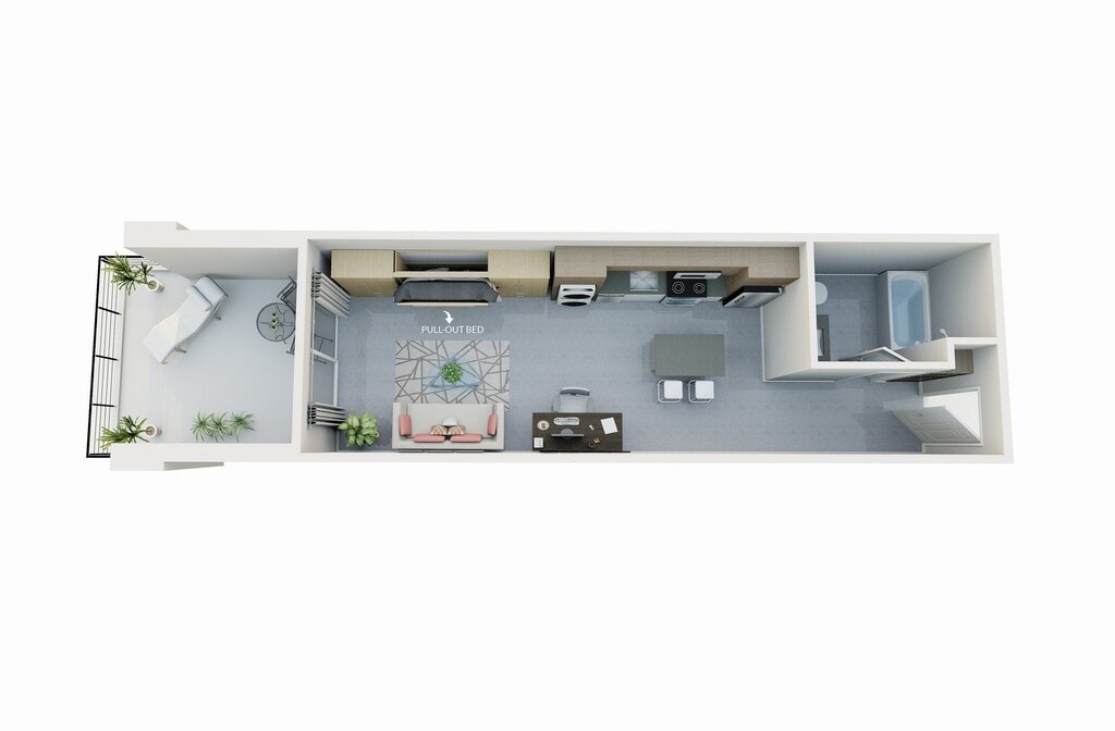 Estudio, 1 Baño, 600 pies²Disponible AhoraGalería del Modelo