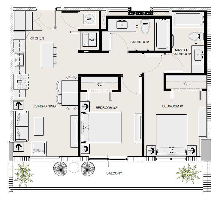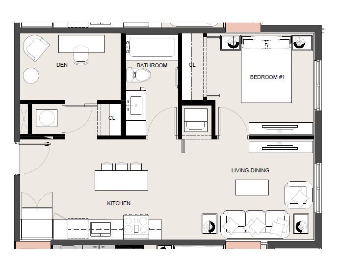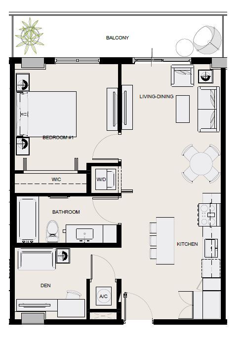 1 Dormitorio, 1 Baño, 635 pies²Disponible AhoraGalería del Modelo