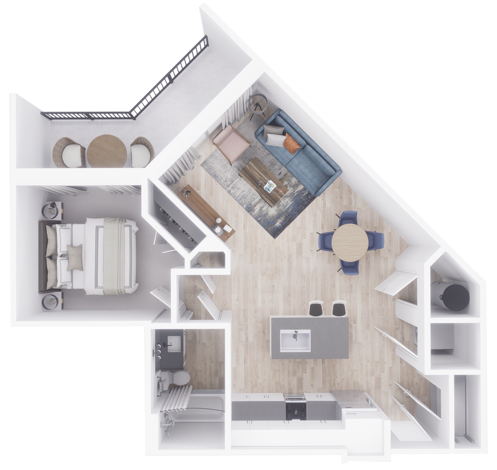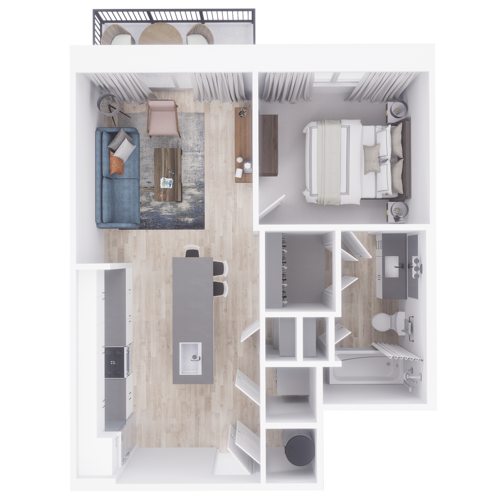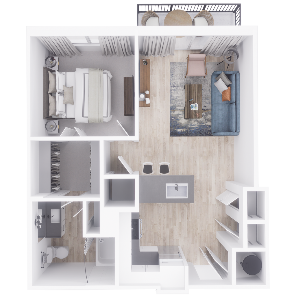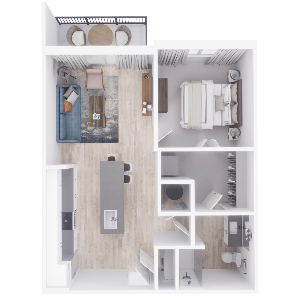 1 Dormitorio, 1 Baño, 779 pies²Disponible AhoraGalería del Modelo