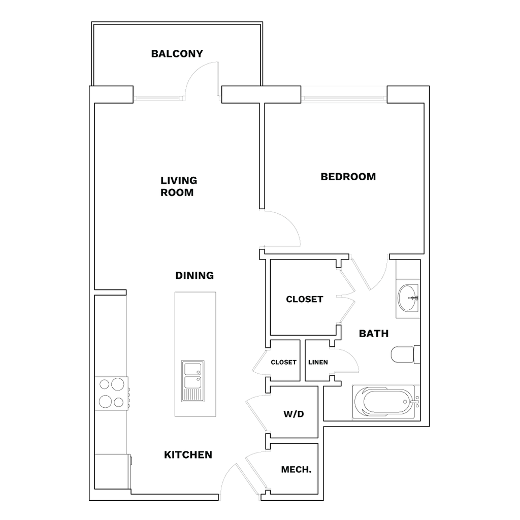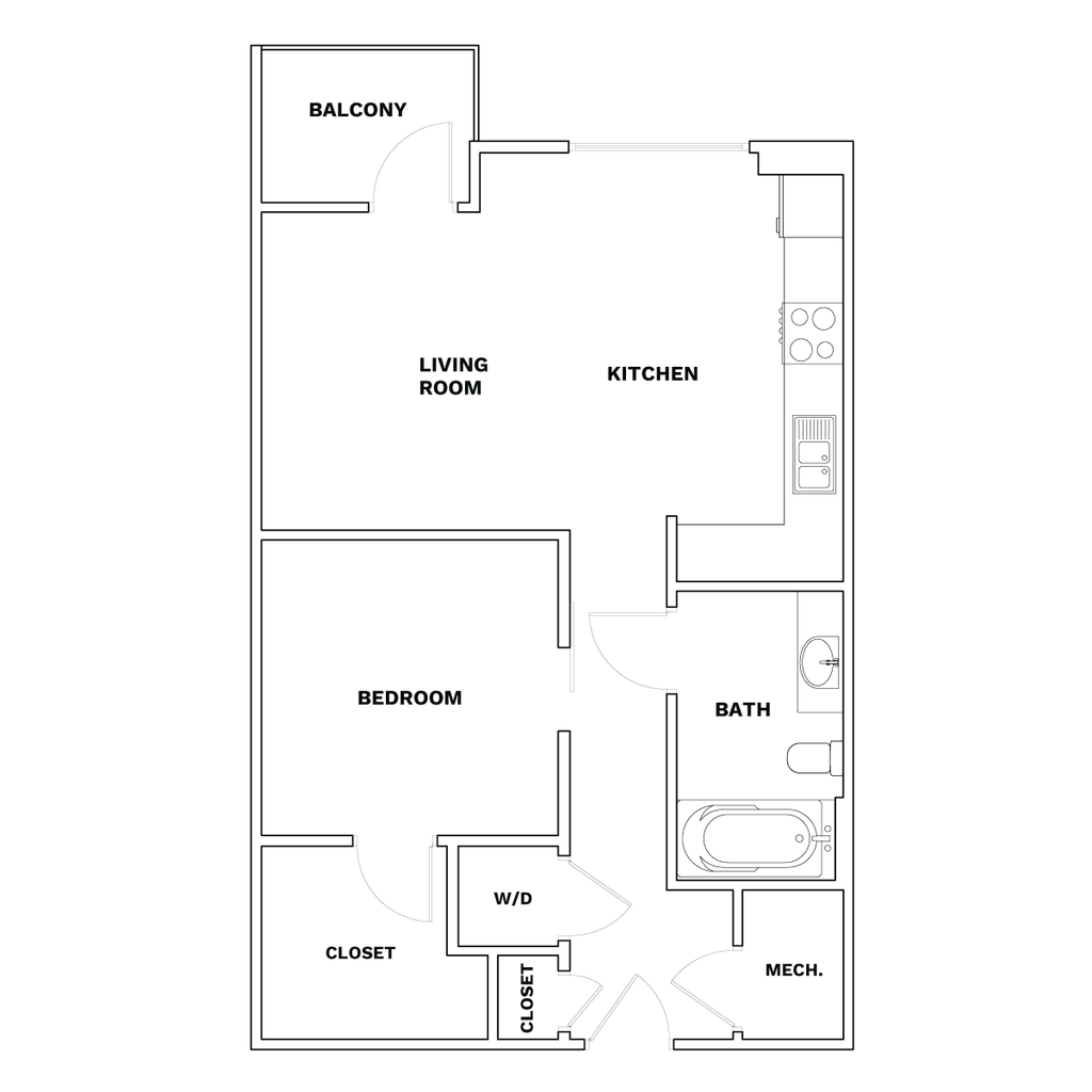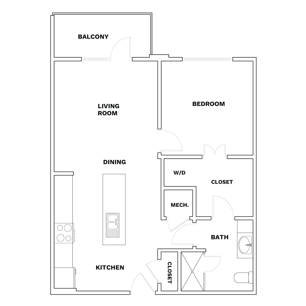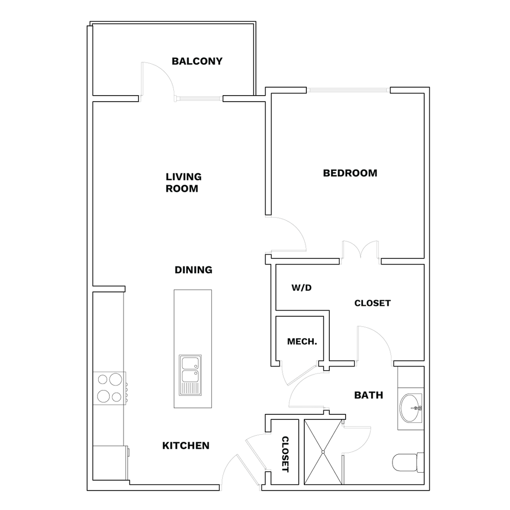 1 Dormitorio, 1 Baño, 706 pies²Disponible AhoraGalería del Modelo