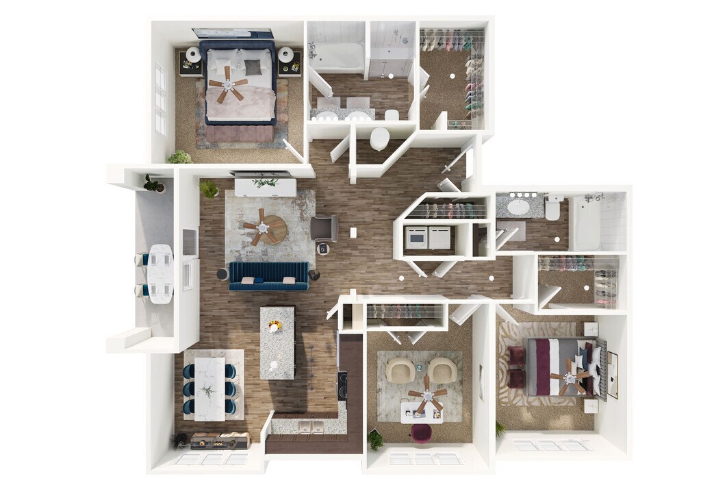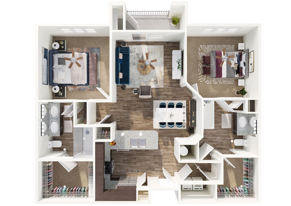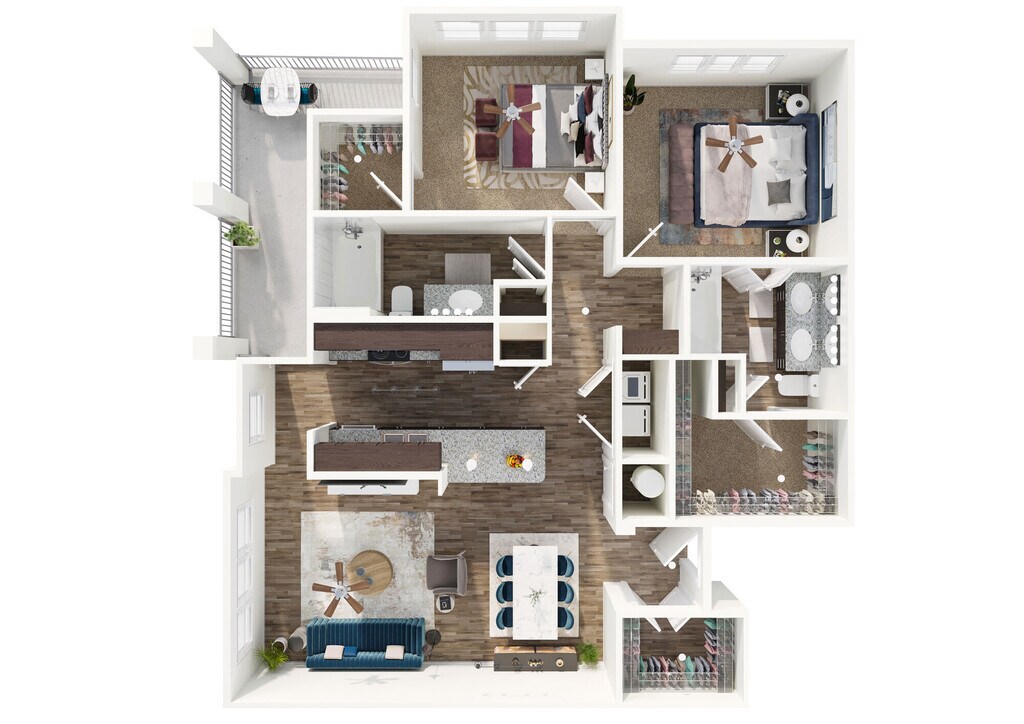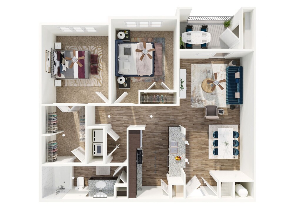 Modelo de apartamento: A2.1Desde $1,5601 Dormitorio, 1 Baño, 722 sq ftDisponible Ahora![]()