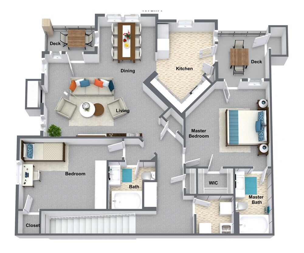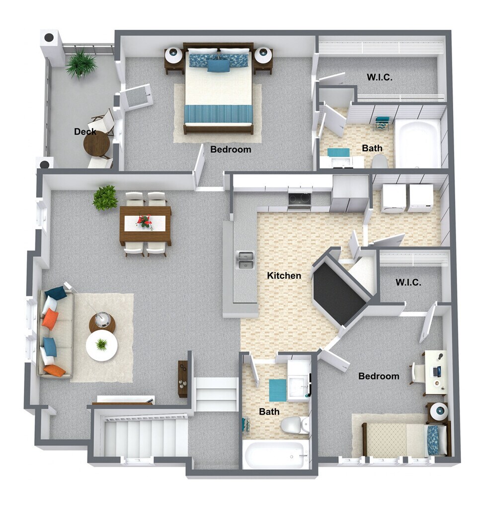 Modelo de apartamento: B2U$1,7102 Dormitorios, 2 Baños, 1330 sq ftDisponible AhoraPlanosFotos![]()