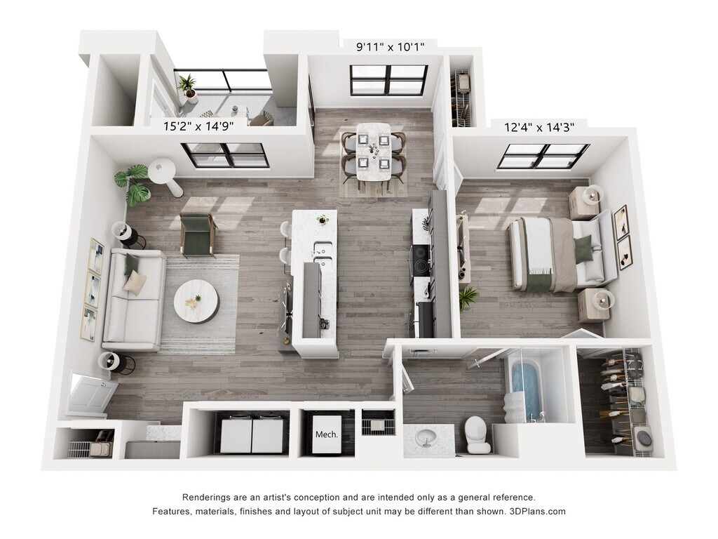 1 Dormitorio, 1 Baño, 920 pies²Disponible Oct 17Galería del Modelo