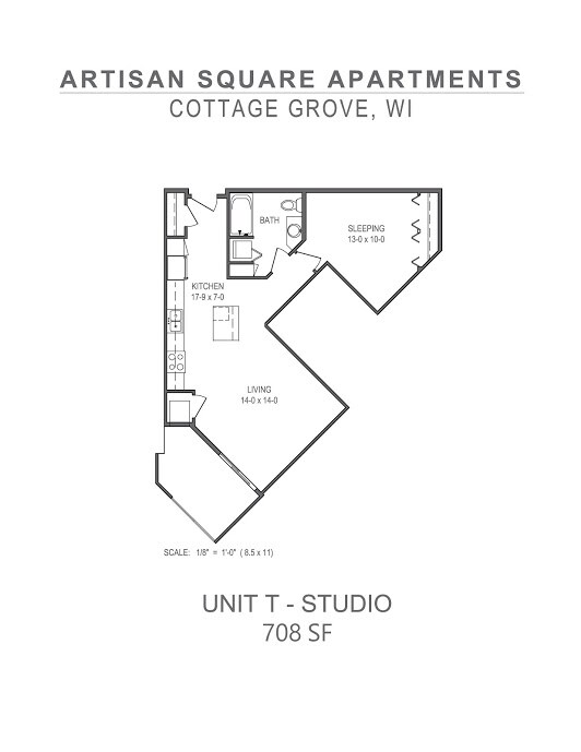 Estudio, 1 Baño, 708 pies²Galería del Modelo
