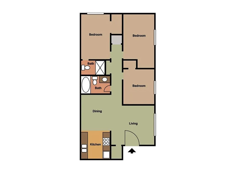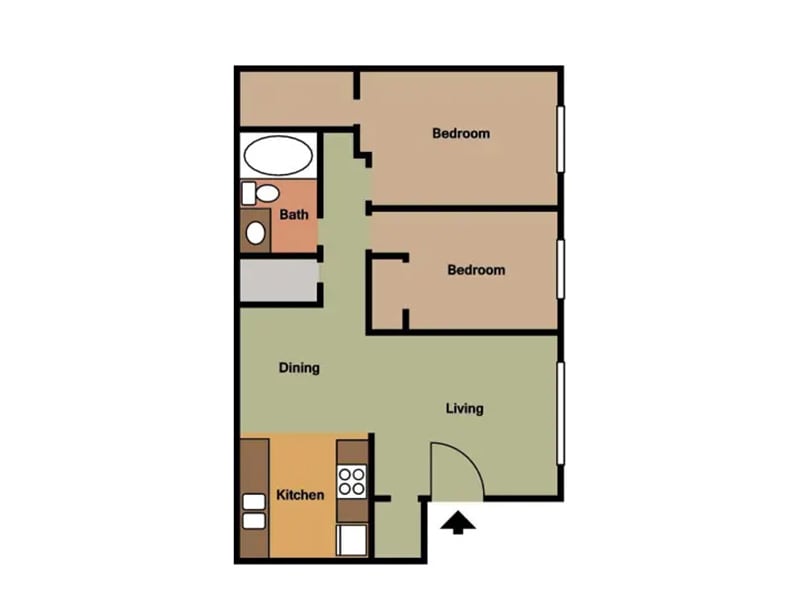 2 Dormitorios, 1 Baño, 750 pies²Disponible AhoraGalería del Modelo