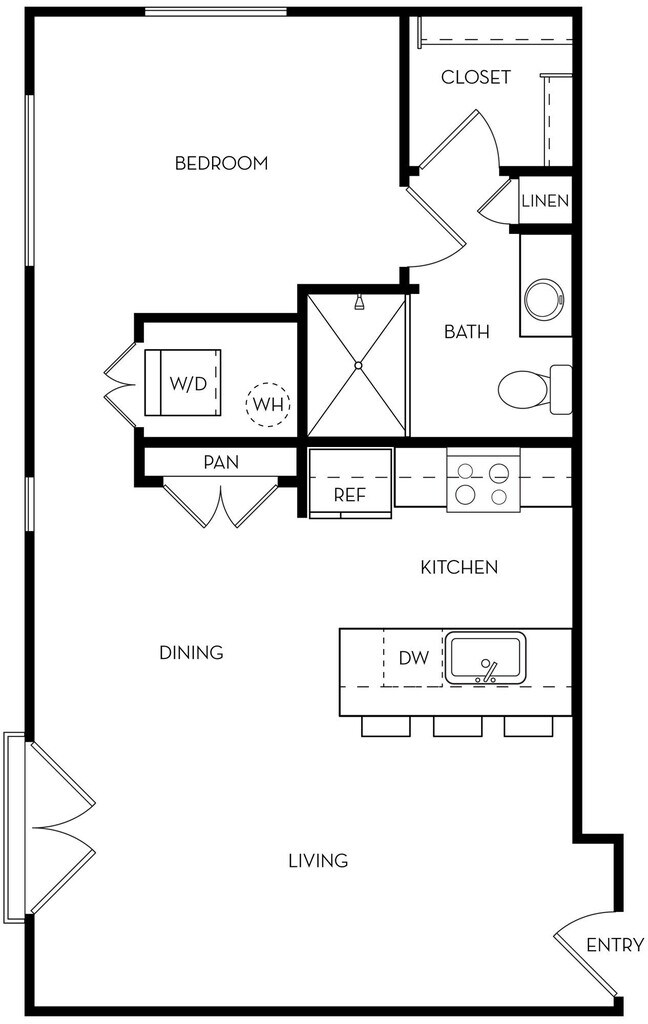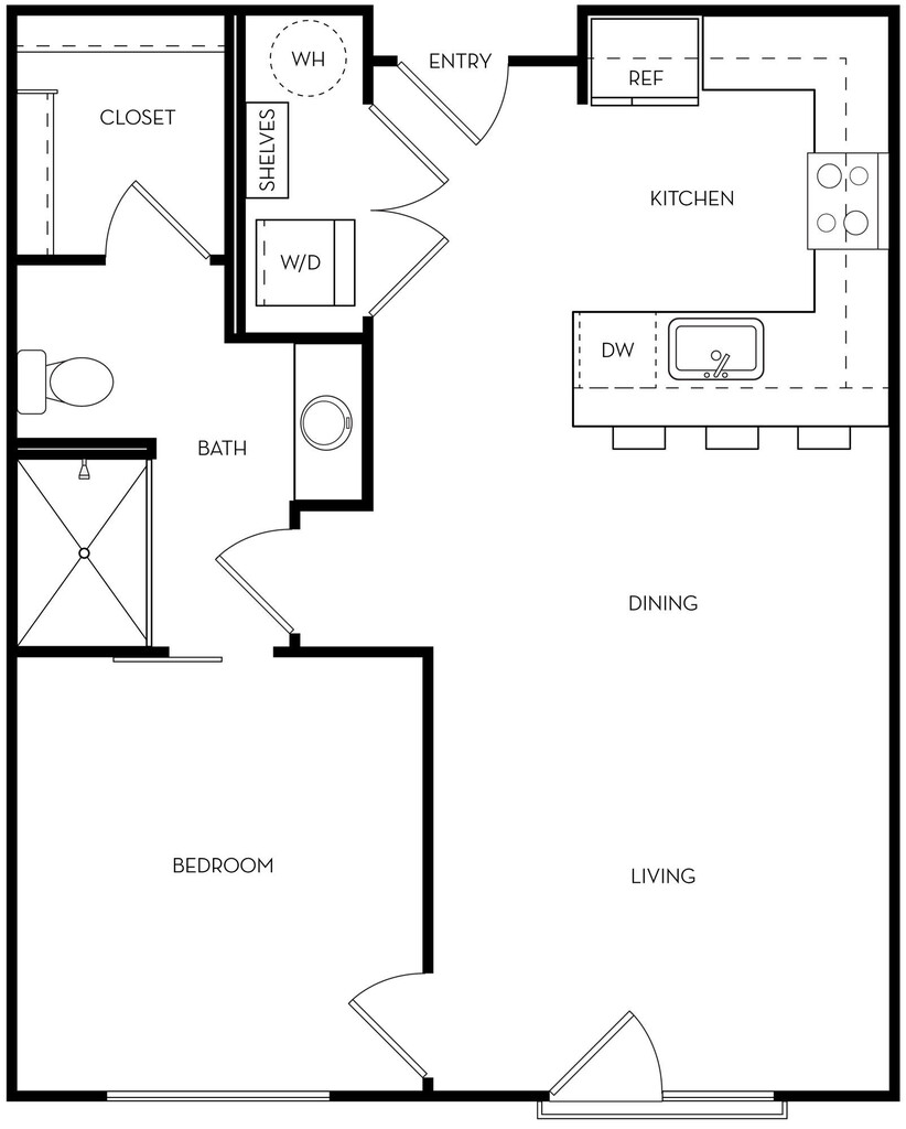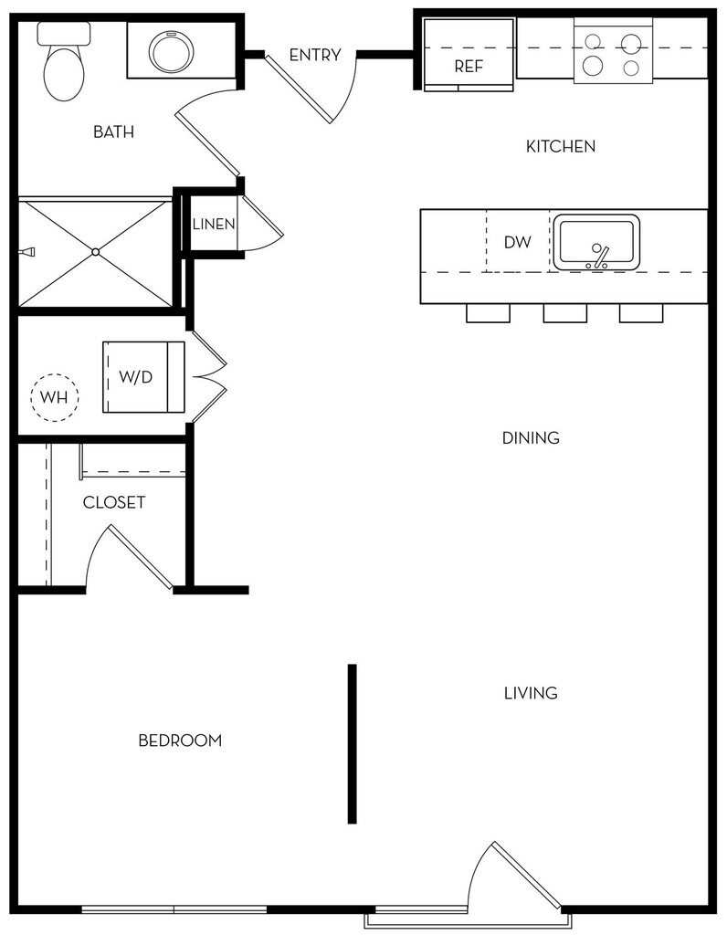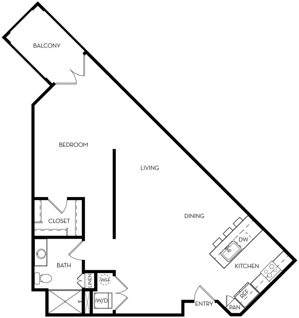 1 Dormitorio, 1 Baño, 802 pies²El más grandeEsta opción tiene las unidades más grandes para este modeloGalería del Modelo