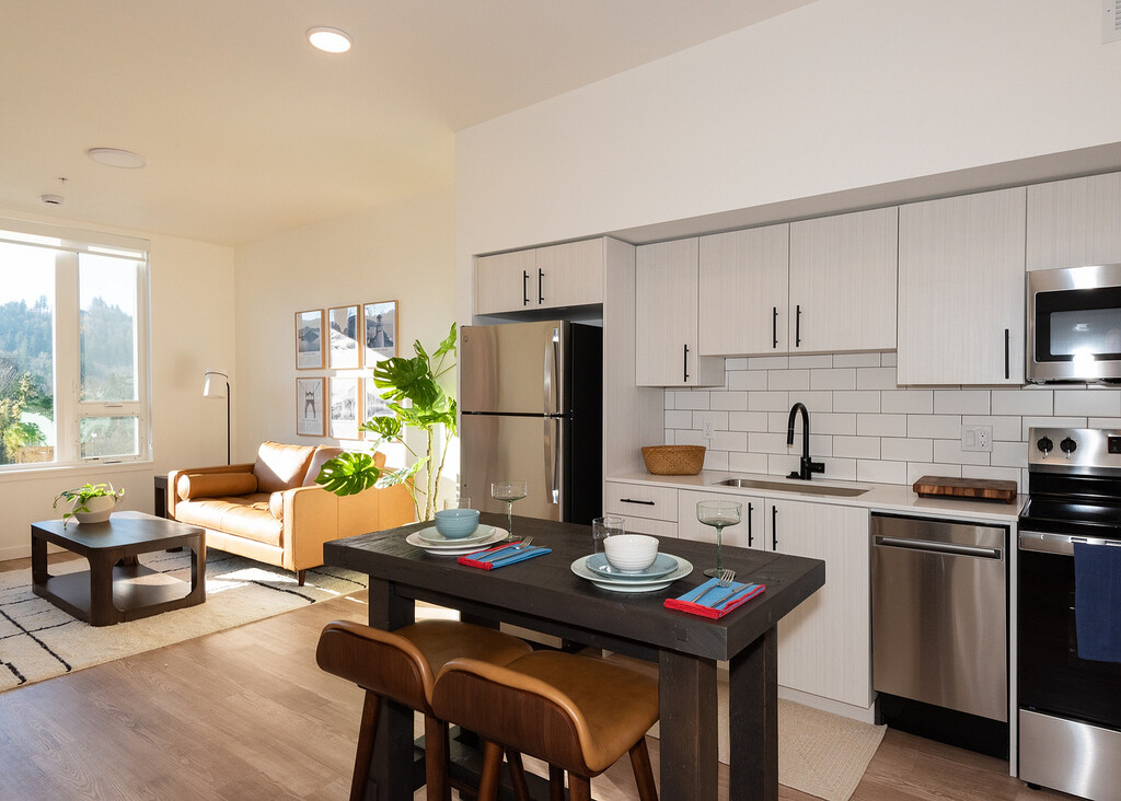 Discover the perfect blend of contemporary living and cultural charm at Arts Plaza Apartments in downtown Gresham. Our thoughtfully designed live-work spaces, studio, one, two, and three-bedroom apartment homes feature modern amenities and stylish finishes, creating a comfortable and inspiring living experience. Enjoy the convenience of reserved parking options, an in-home washer and dryer, and open floor plans with the flexibility to design your ideal retreat. Take in stunning views of Mt. Hood from our rooftop deck, the perfect place to unwind or gather with friends. Start your mornings or settle in for a productive afternoon at the on-site Autumn Coffee Roasting cafe, featuring inviting spaces to work or connect. Stay active in our resident gym, complete with Peloton bikes, making fitness a seamless part of your routine. Live in a brand-new apartment home and immerse yourself in a lifestyle with the lively Gresham Arts Plaza Park just outside your door. Imagine picking out your favorite fresh produce at the Gresham Farmers' Market on Saturdays and jamming to the sounds of live music during "Music Mondays." At Arts Plaza Apartments, you'll find a home that inspires you every day.