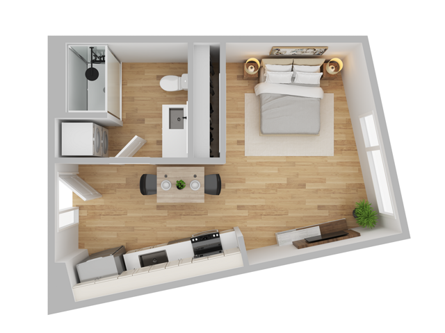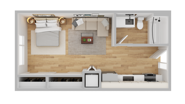 1 Dormitorio, 1 Baño, 528-640 pies²Disponible AhoraGalería del Modelo