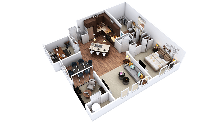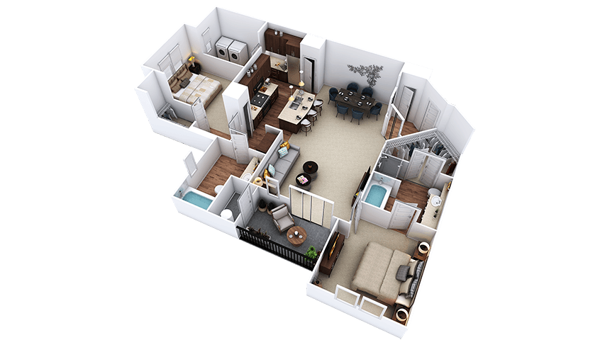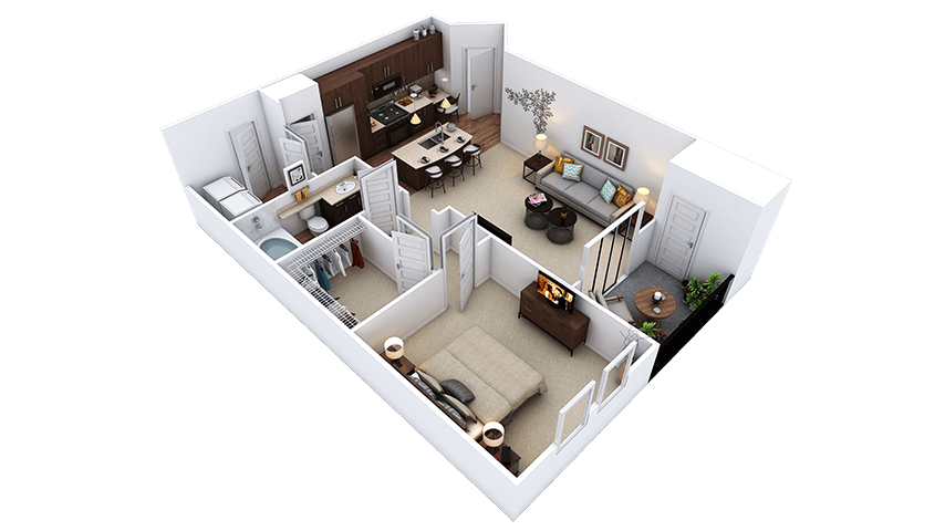 1 Dormitorio, 1 Baño, 855 pies²Disponible AhoraGalería del Modelo