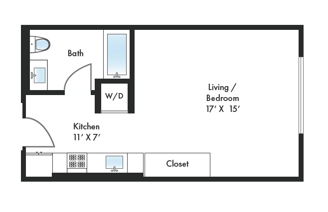 Estudio, 1 Baño, 480 pies²Disponible AhoraGalería del Modelo