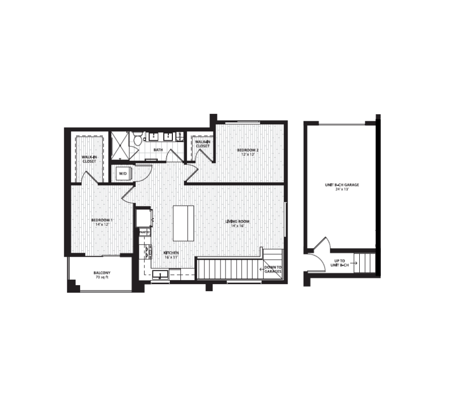1 Dormitorio, 1 Baño, 719 pies²Disponible AhoraGalería del Modelo