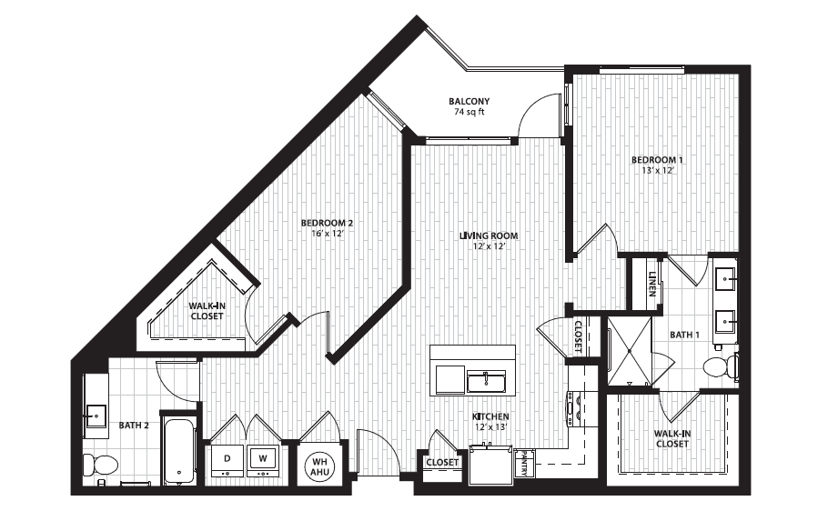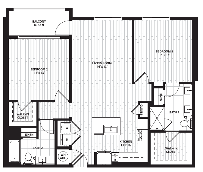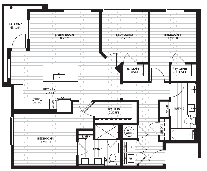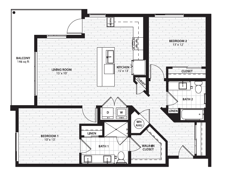 Modelo de apartamento: A2Llame para Precios1 Dormitorio, 1 Baño, 810 sq ftNo Disponible![]()