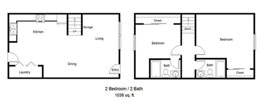 2 Dormitorios, 2 Baños, 1036 pies²Disponible AhoraGalería del Modelo