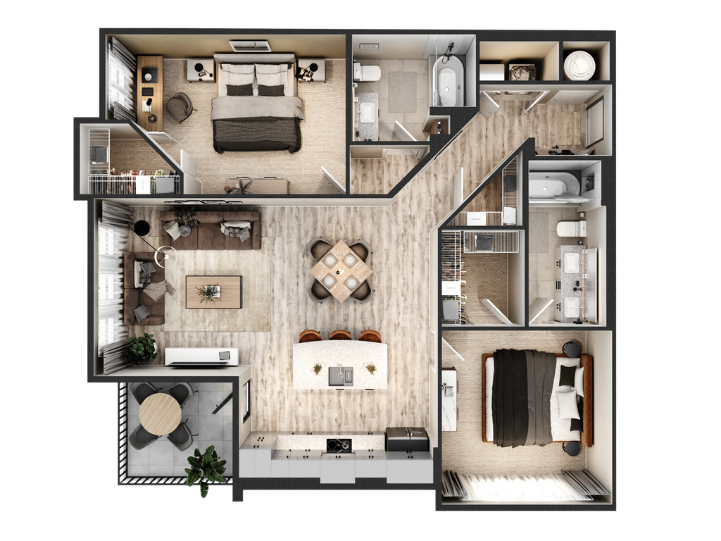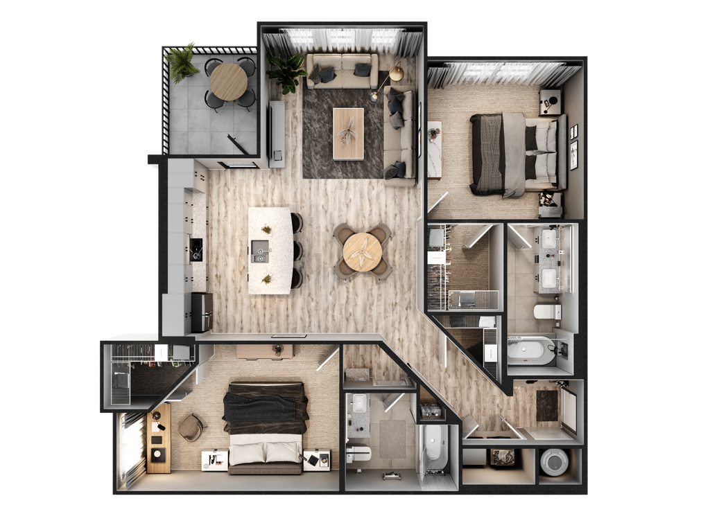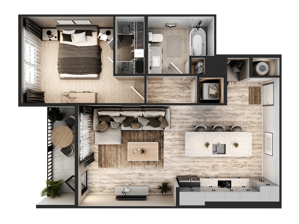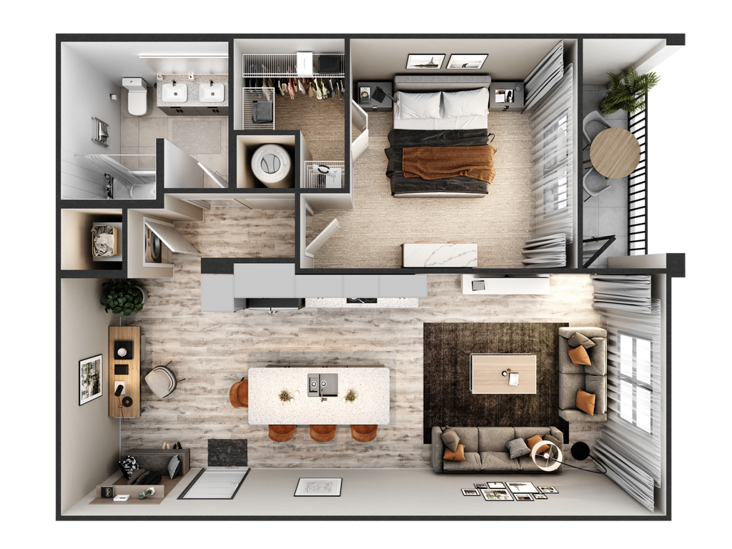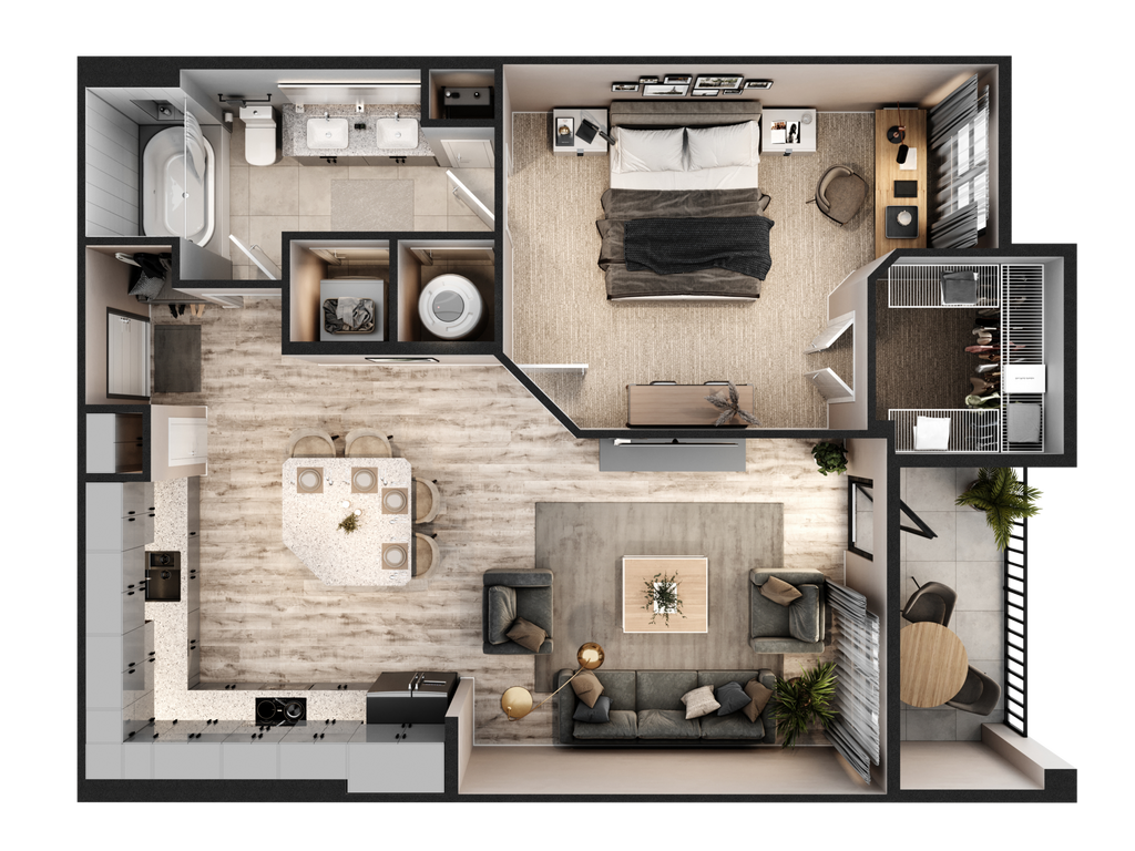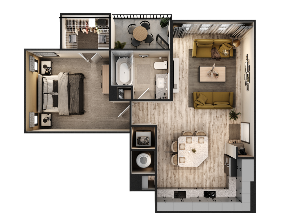 1 Dormitorio, 1 Baño, 803 pies²Disponible AhoraGalería del Modelo