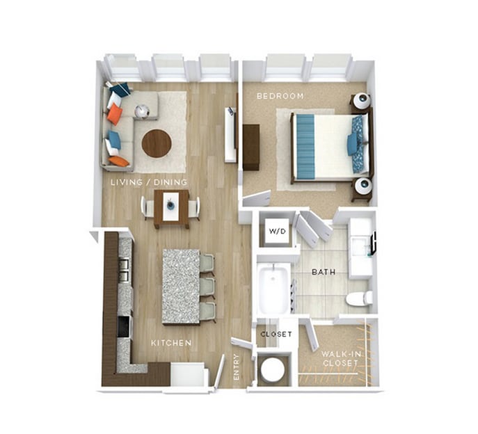 1 Dormitorio, 1 Baño, 724 pies²Disponible AhoraGalería del Modelo