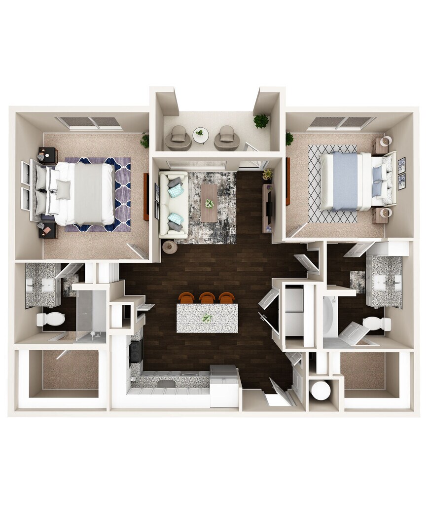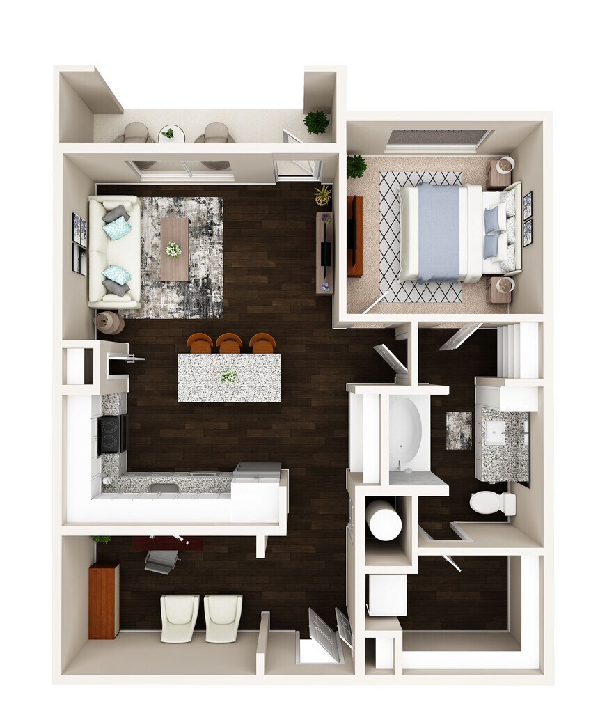 1 Dormitorio, 1 Baño, 869 pies²Disponible AhoraEl más grandeEsta opción tiene las unidades más grandes para este modeloGalería del Modelo