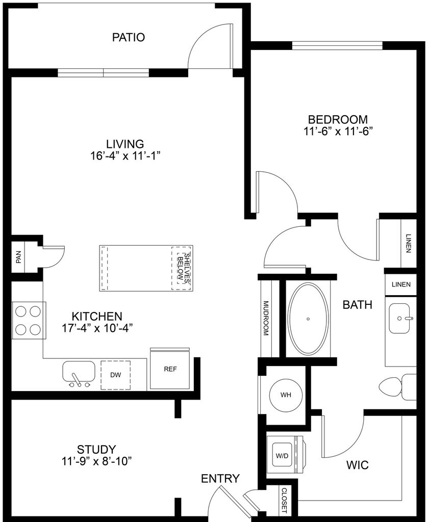 1 Dormitorio, 1 Baño, 818 pies²Disponible AhoraGalería del Modelo
