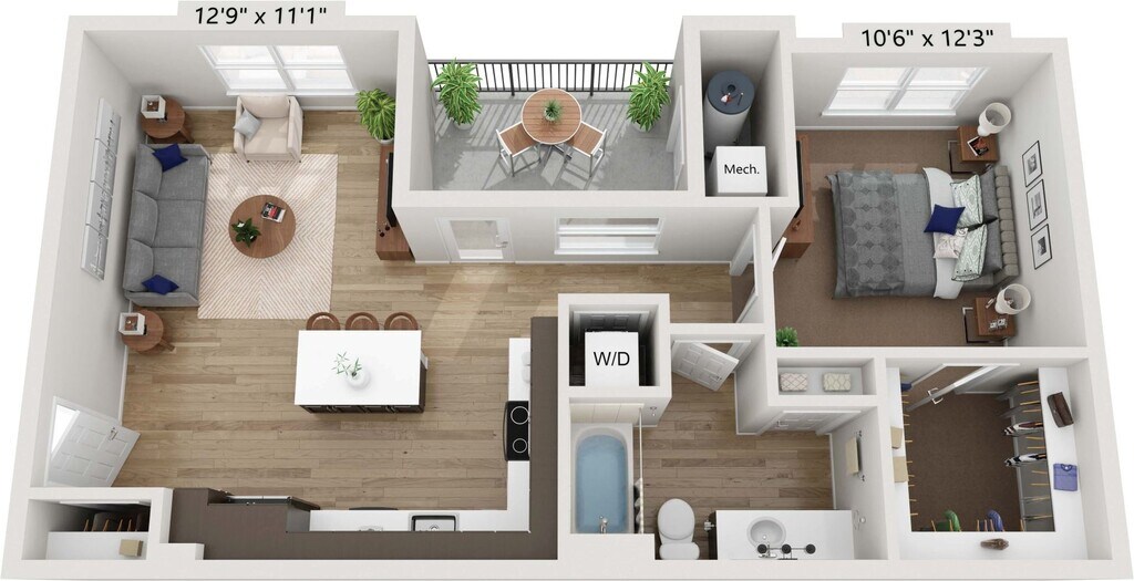 1 Dormitorio, 1 Baño, 805 pies²Disponible AhoraGalería del Modelo