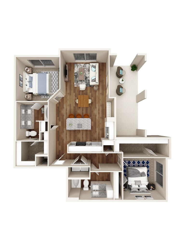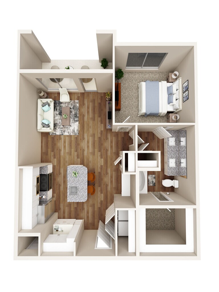 1 Dormitorio, 1 Baño, 698-711 pies²Disponible AhoraGalería del Modelo