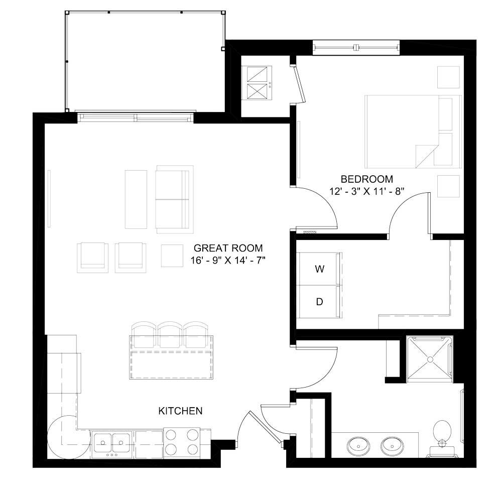 Estudio, 1 Baño, 598 pies²Galería del Modelo
