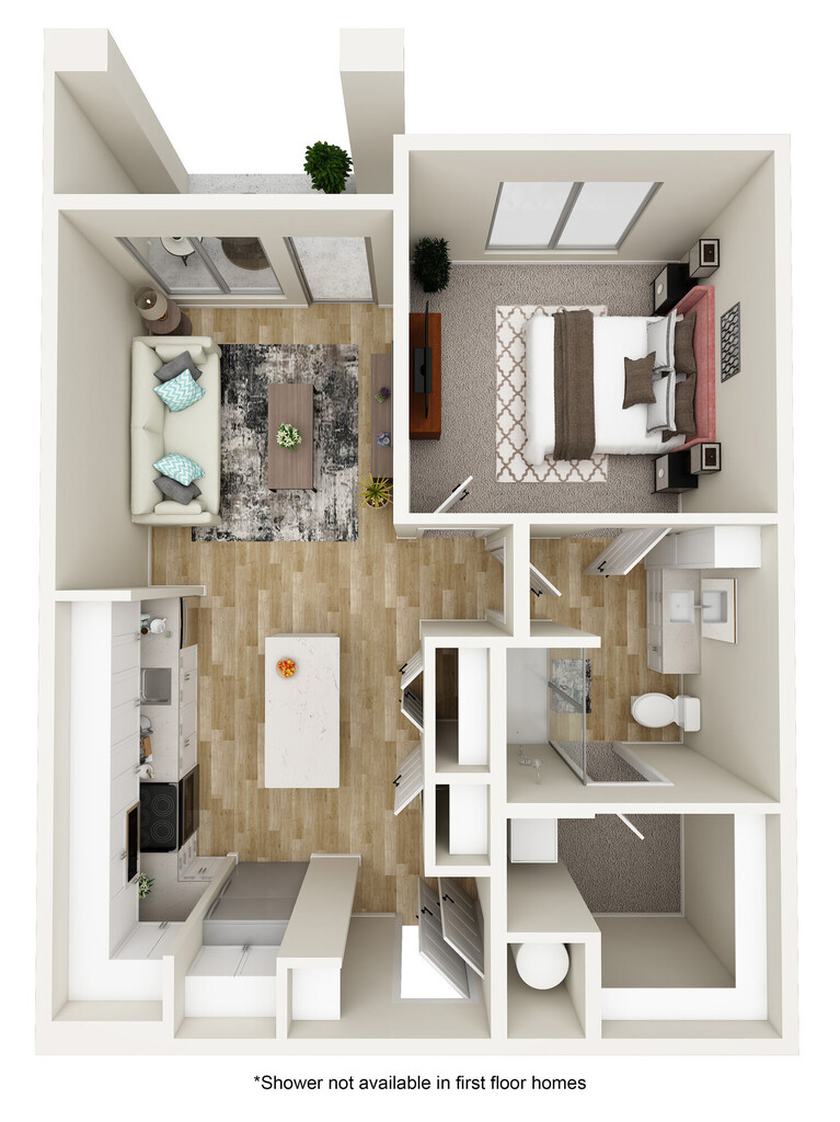 1 Dormitorio, 1 Baño, 710 pies²Disponible AhoraGalería del Modelo