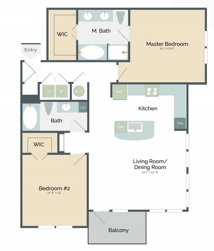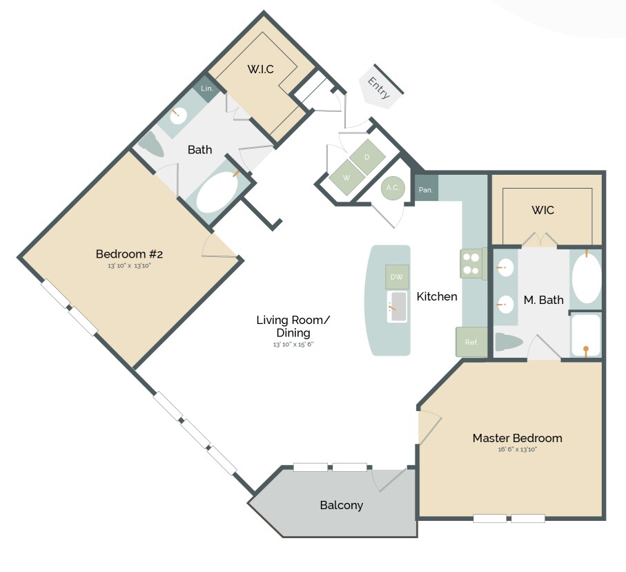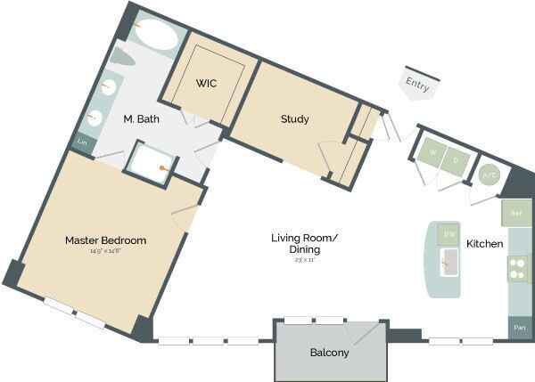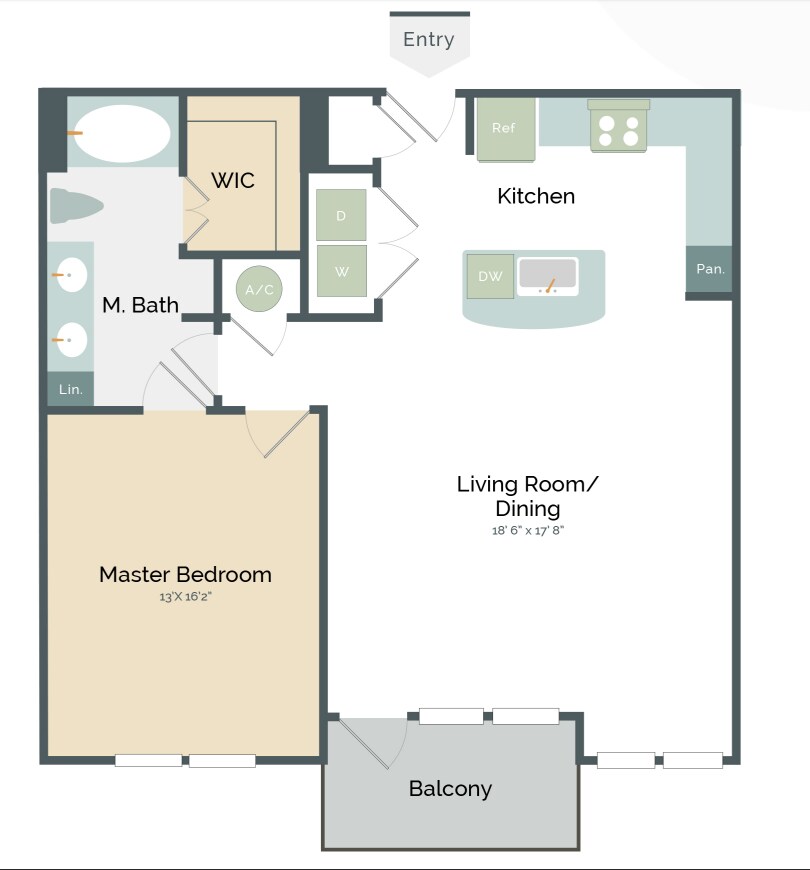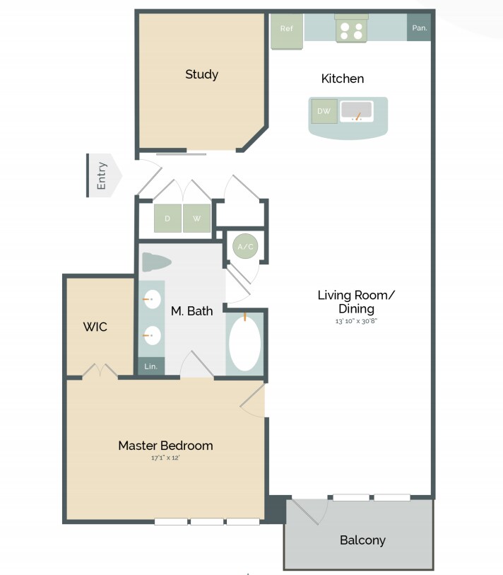 1 Dormitorio, 1 Baño, 719 pies²Disponible AhoraGalería del Modelo