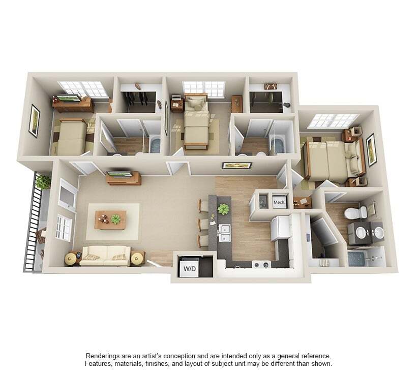 El rango de alquiler de Apartamentos 1 dormitorios a 4 dormitorios en Ascension at Ironwood van desde $999 a $1,649