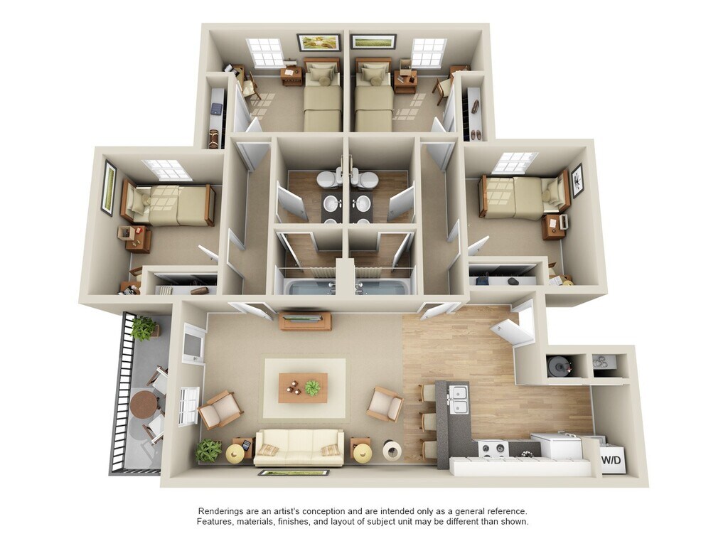 Modelo de apartamento: B1Desde $1,0492 Dormitorios, 2 Baños, 856 sq ftDisponible Ahora![]()