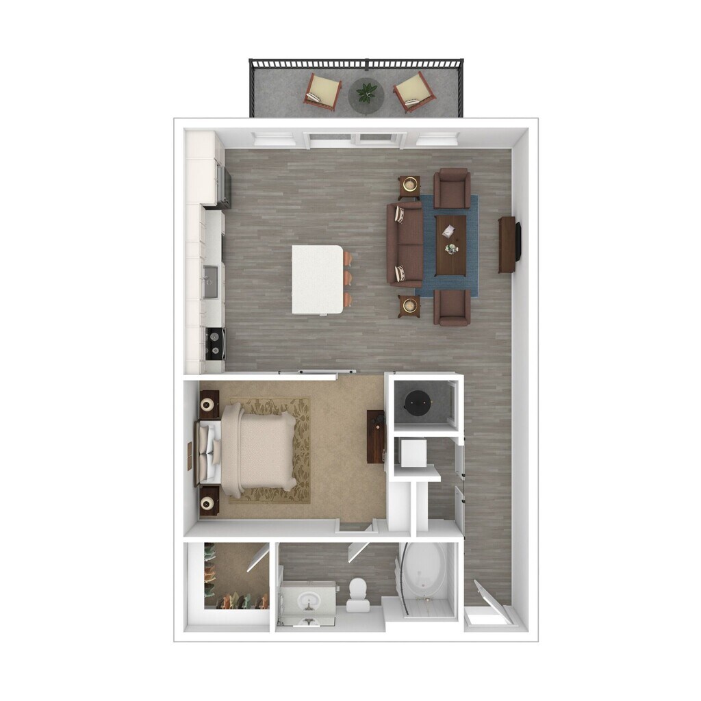 Estudio, 1 Baño, 631 pies²El más grandeEsta opción tiene las unidades más grandes para este modeloGalería del Modelo