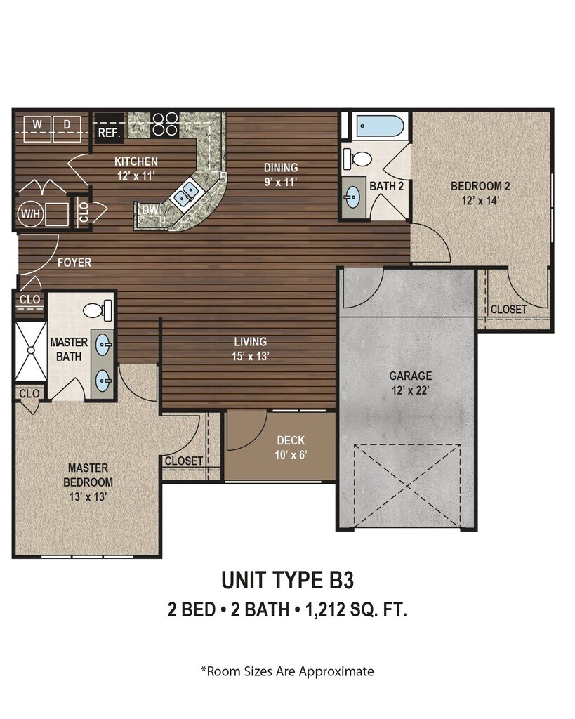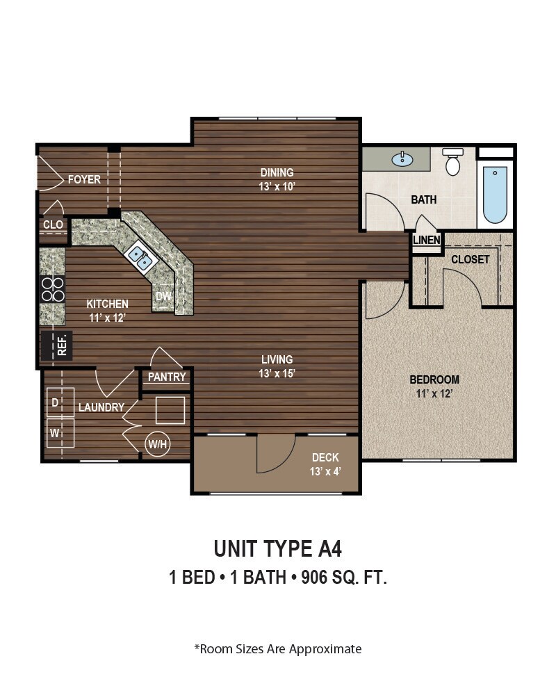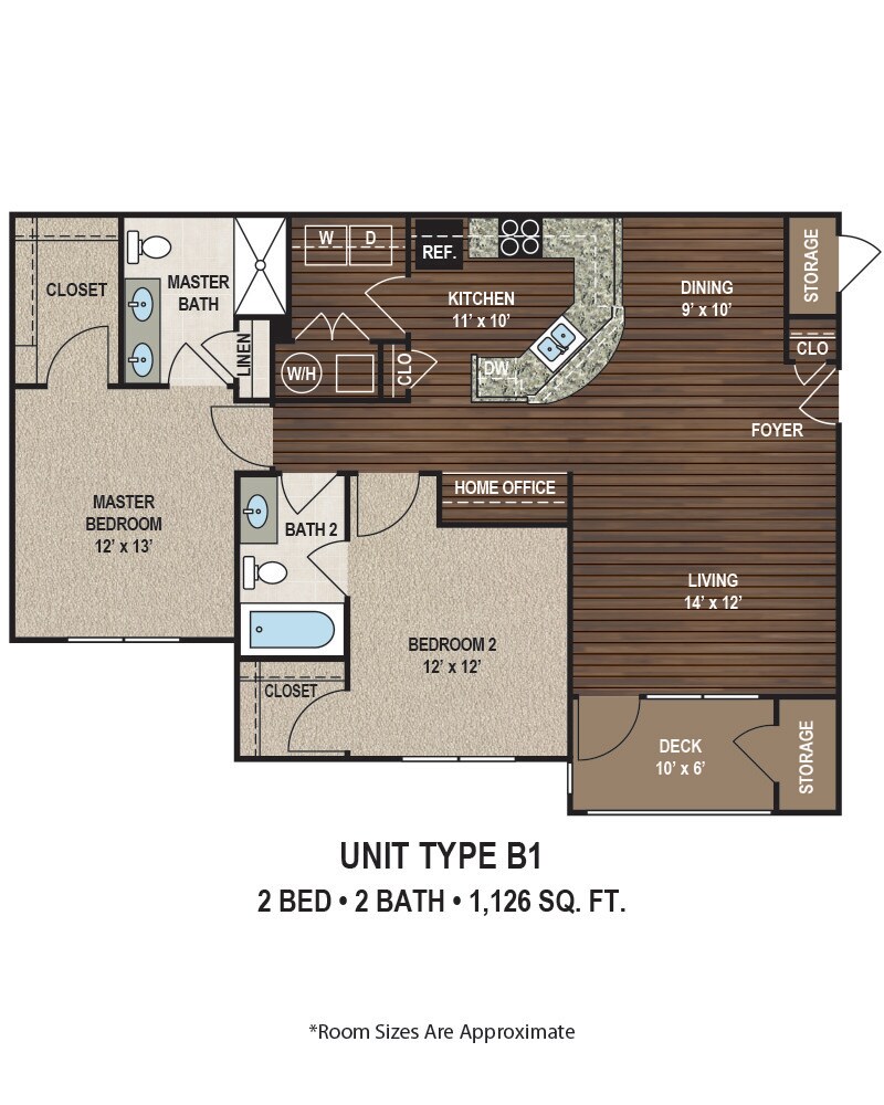 1 Dormitorio, 1 Baño, 895 pies²Disponible AhoraGalería del Modelo