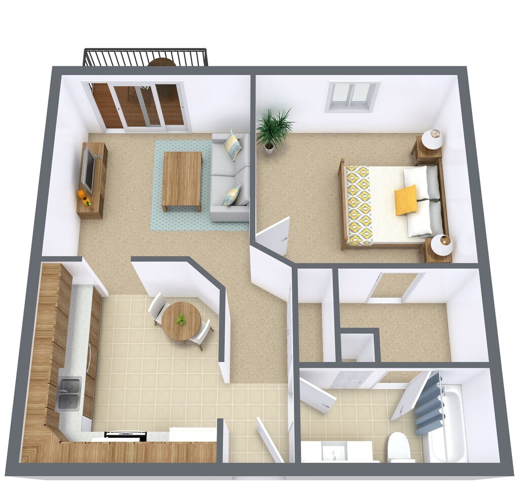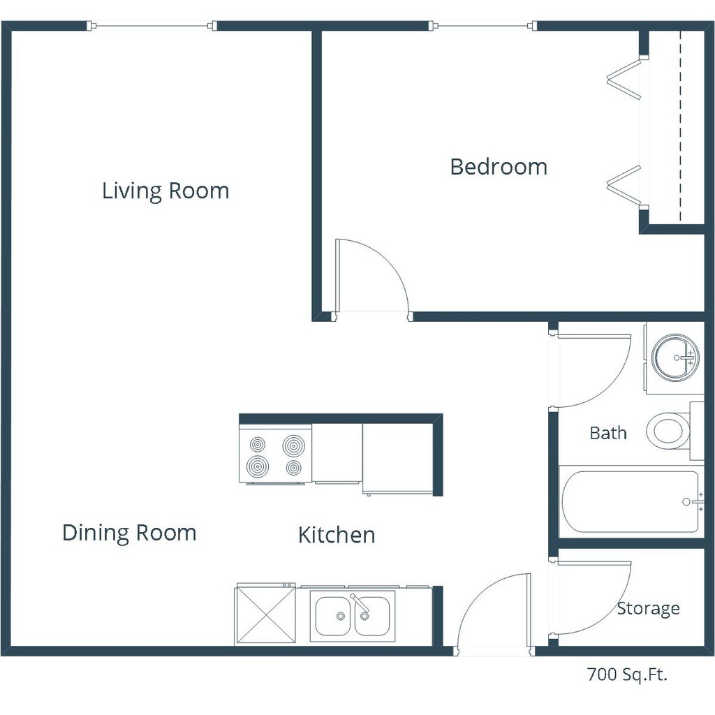 1 Dormitorio, 1 Baño, 700 pies²Galería del Modelo