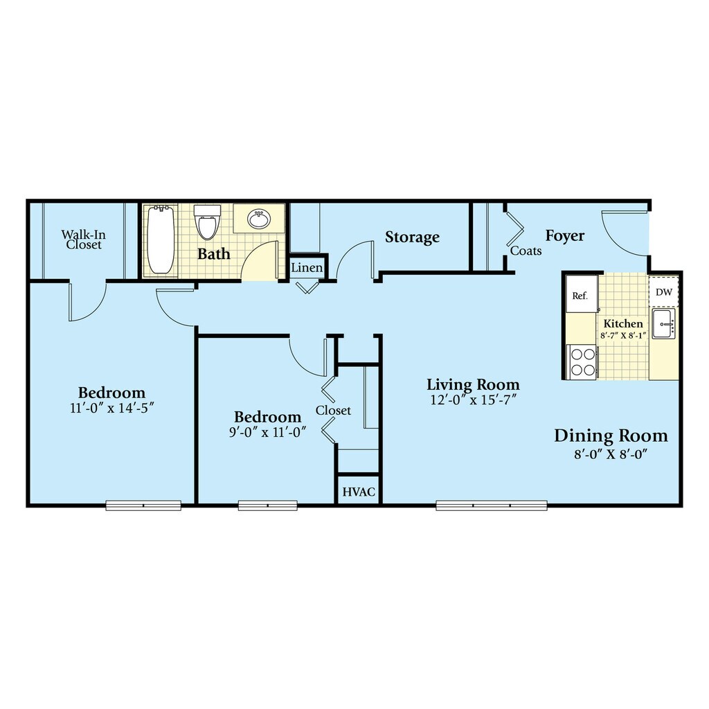 Modelo de apartamento: 2 Bedroom Townhouse2 Dormitorios, 1 Baño, 950 sq ftNo Disponible2 Bedroom Townhouse - Plano 1 Two Bedroom Townhouse