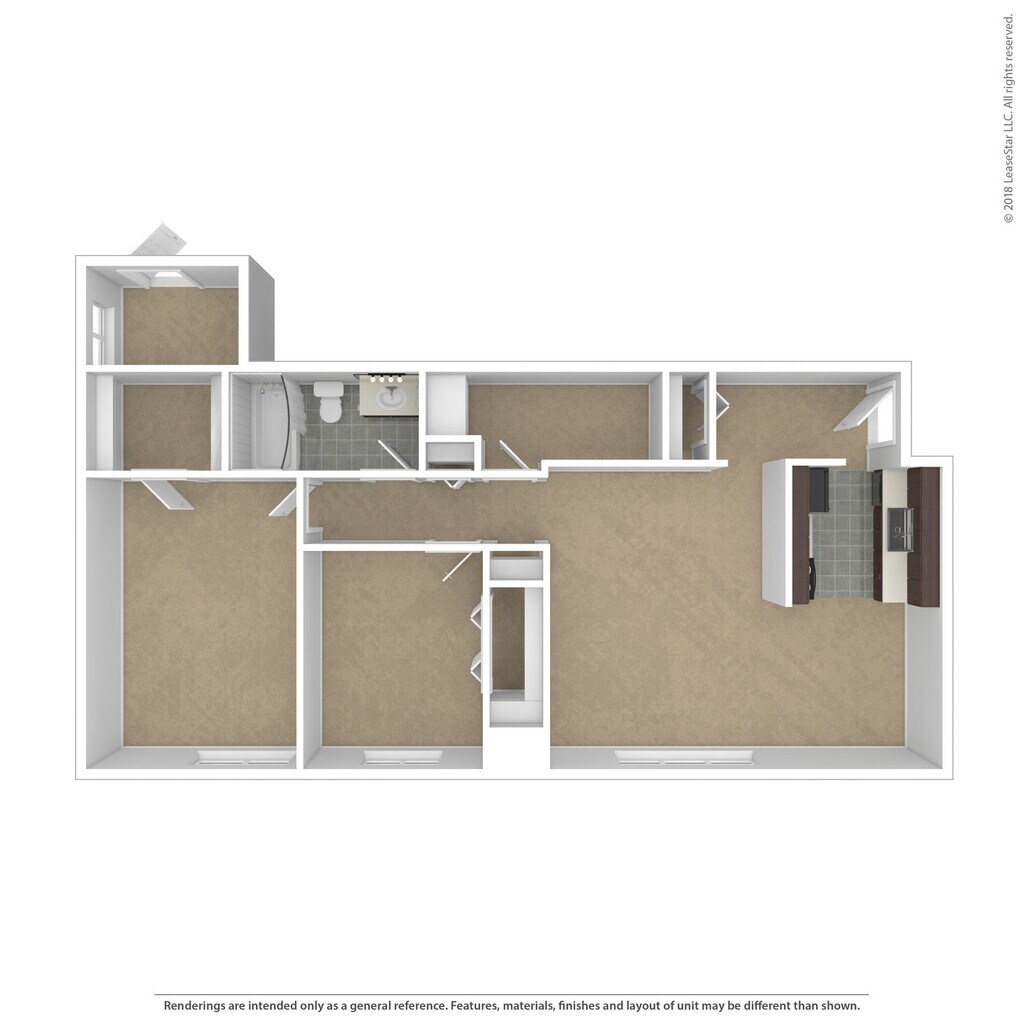 2 Dormitorios, 1 Baño, 950 pies²Galería del Modelo