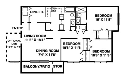 Modelo de apartamento: 3 Bedroom 2 Bath (Den Optional)Desde $1,6503 Dormitorios, 2 Baños, 1344-1444 sq ftDisponible Ahora3 Bedroom 2 Bath (Den Optional) - Plano 1 3 Bedroom 2 Bath (Den Optional) - Plano 2 3 Bedroom 2 Bath (Den Optional) - Plano 3 3 Bedroom 2 Bath (Den Optional) - Plano 4