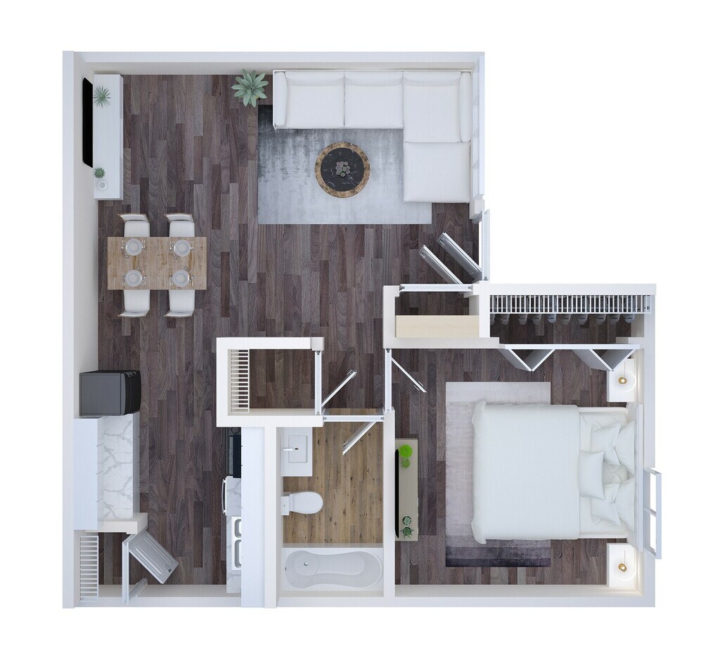 1 Dormitorio, 1 Baño, 595 pies²Disponible AhoraGalería del Modelo