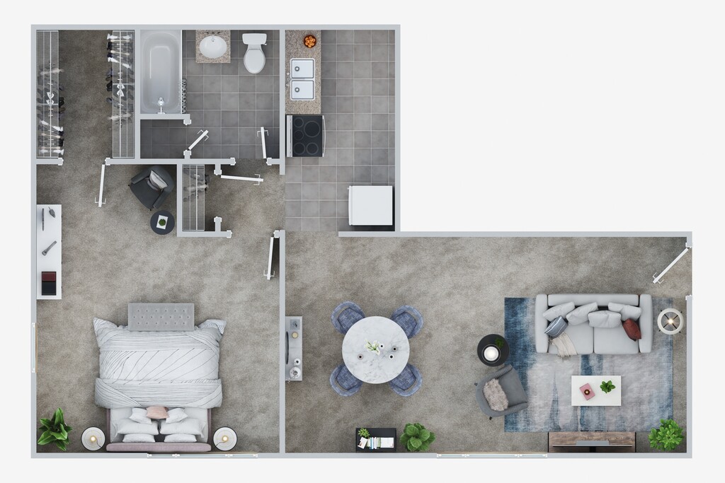 1 Dormitorio, 1 Baño, 800 pies²Más CargosDisponible AhoraEl más grandeEsta opción tiene las unidades más grandes para este modeloGalería del Modelo